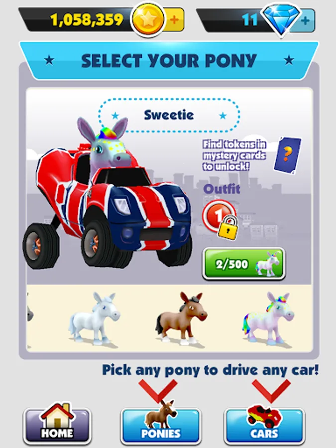 Being a stunt race driver is dangerous, and it is important to keep your Pony driver safe in Pony Car Racing! Collect or spend coins to purchase daredevil helmets for your pony driver, and use these to keep on racing and driving even after crashing! Don’t forget to pack as many helmets as you can if you are aiming to reach the highscore.