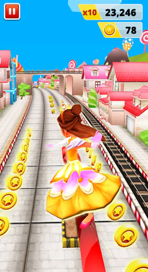 Collect coins 🪙 as you take your princess 👸 to run through the princess run subway where you can surf, dash and jump along the top of trains and temples to collect exciting powerups to help you reach the highscore in this exciting princess run simulator!