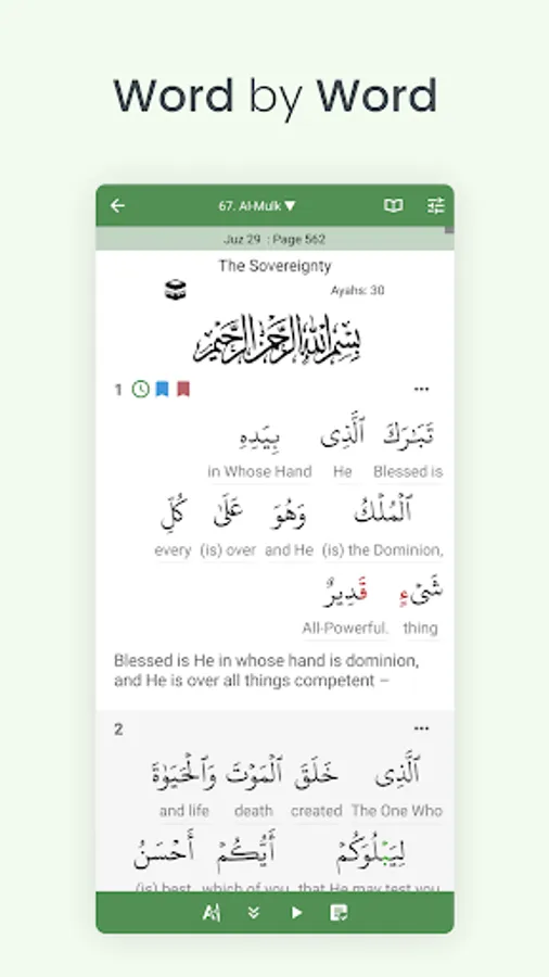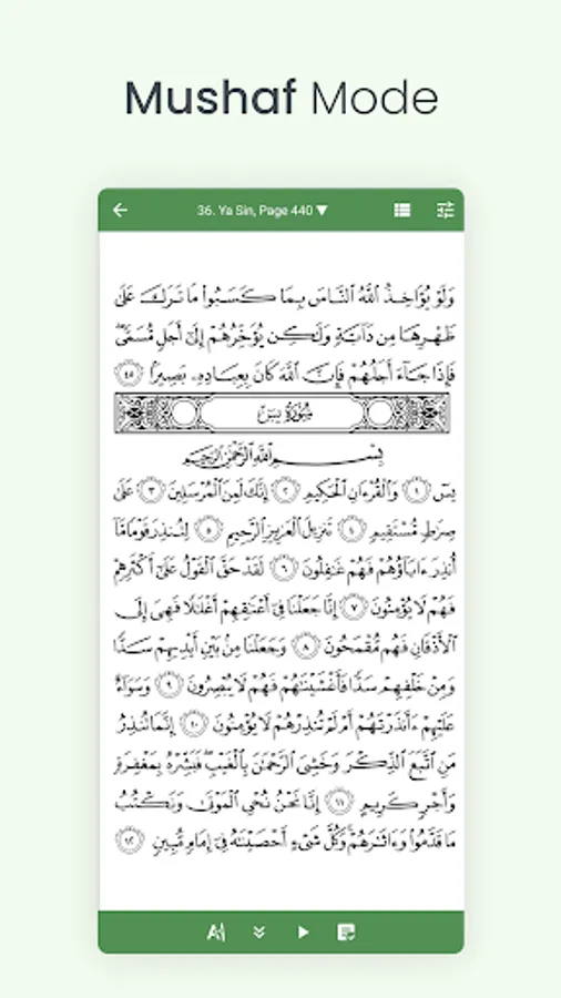 ● Recite Quran in Mushaf mode to have the same experience when reciting from hard-copy Mushaf