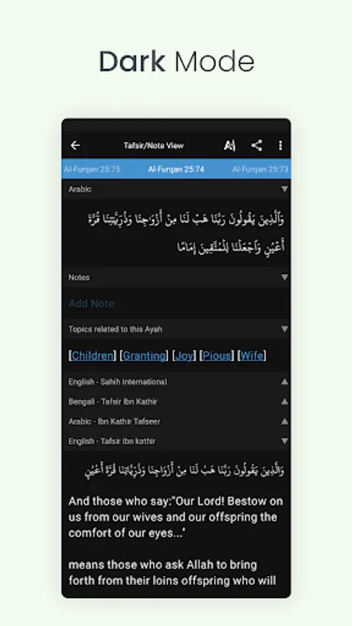 Alhamdulillah! Introducing Al Quran (Tafsir & by Word), the ultimate Quran study tool for all. With features such as a robust audio system with repeat functions to aid in Quran hifz, word-by-word analysis and translations, Tafsir Ibn Kathir, colour-coded tajweed, Quran topics list, bookmark and note-taking with sync, a powerful search, and multiple translations and tafsirs in various languages, this app is packed with everything you need to deepen your understanding of the Quran. Download now and start your journey to a deeper understanding of the Quran with the Al Quran (Tafsir & by Word).