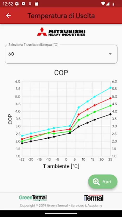 The ad-hoc designed compressor and heat exchanger allow delivery temperatures to be reached in a range of 60-90°C without any aid from electric heaters. This application aims to provide technical support during the initial dimensioning of the system, the search for the best performance and return on investment.