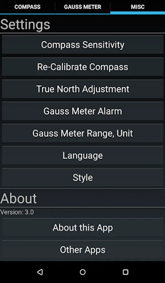 Note: Mobile phone sensor can only detect DC type magnetic field, that is the earth magnetic field. When measuring power line magnetic field ( for example, 50 / 60 Hz AC) , the result is not accurate, or even no reading at all. This app is for daily uses only, please use professional instrument for accurate measurement.