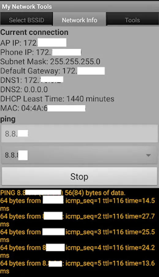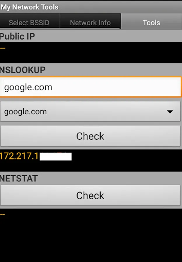 A small size and handy network tool for checking Wi-Fi status, reporting the rssi, channel, bandwidth. It also allow BSSID selection, but this feature is not work on android 10. Network tool included ping, netstat, public IP checking and nslookup.