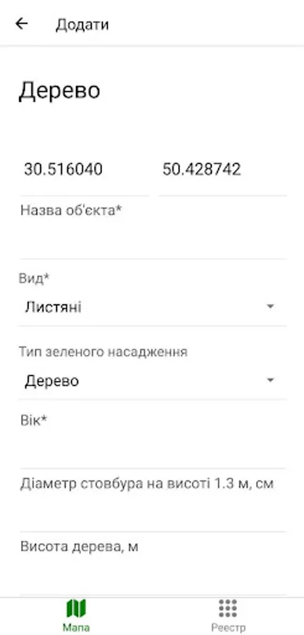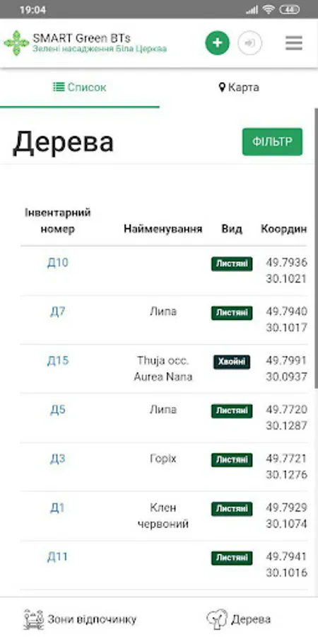 Online system of accounting of green plantings of the city of Bila Tserkva - Ukraine