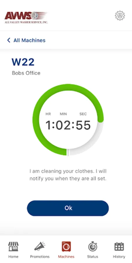 Once the washer or dryer gets going the app also gives you a time remaining that tells you how long there is to go until your laundry is done.
