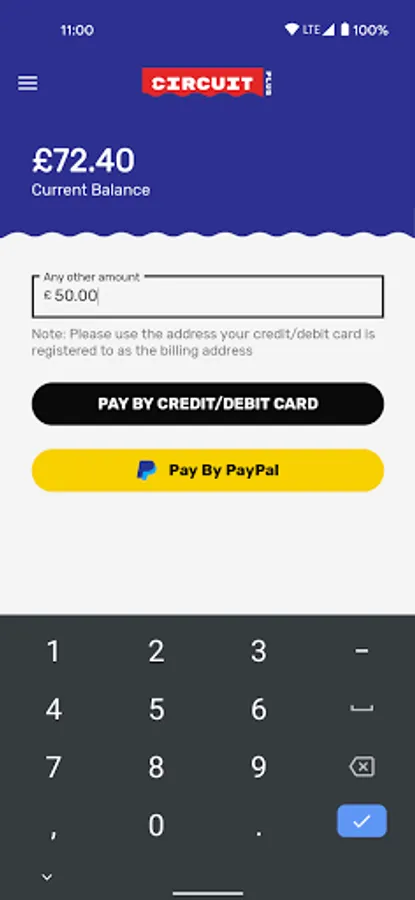 The minimum amount of top-up credit you can buy is £5.00. Your payment will be processed through a Payment Provider and Circuit will not hold any card details.