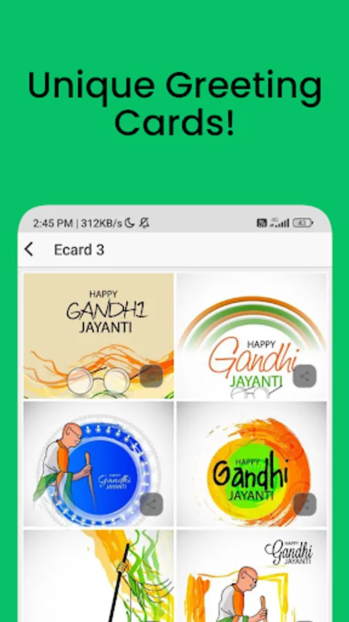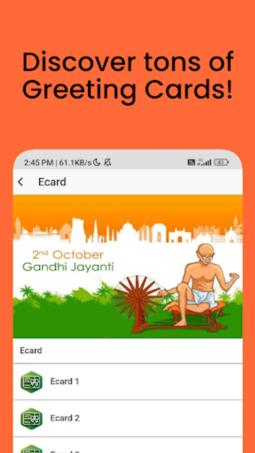 Gandhi Jayanti Greeting Cards and Wishes has these amazing features: