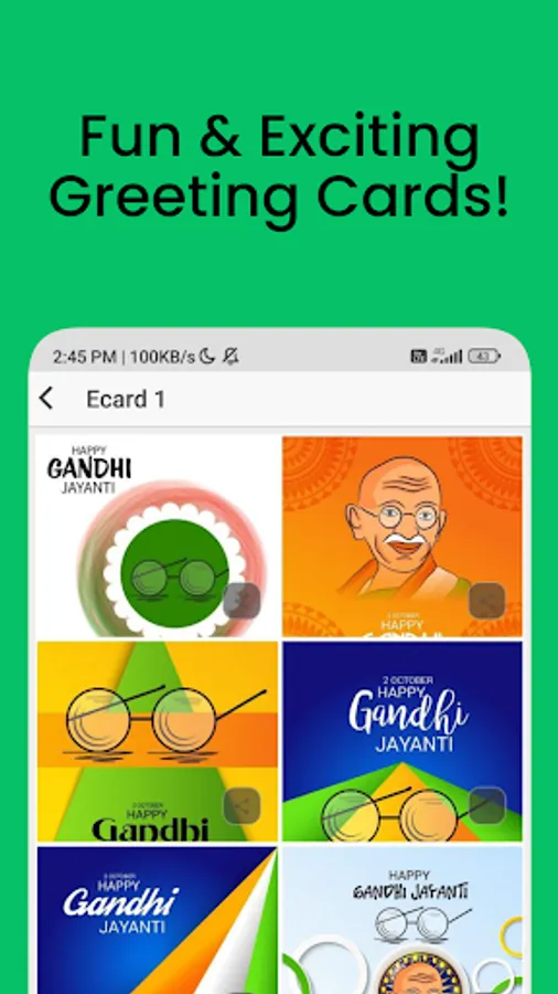Download now Happy Gandhi Day Greeting Cards and Wishes before we start charging. The app has thousands of greeting cards and we will update it with this greeting maker.