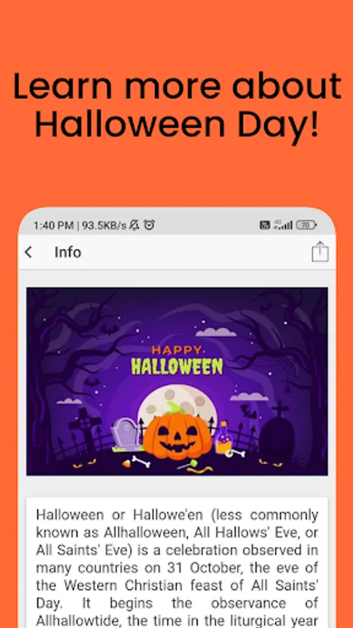 Halloween Day Greeting Cards and Wishes is all in one app greeting and wishes plus special quotes to celebrate the occasions. This is a celebration of sending greeting cards and wishes to all friends.