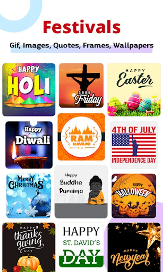 * All Festivals Greetings Like Christmas , Thanksgiving, Easter, Good Friday Mothers Day and many more