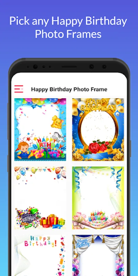 Birthday is special for everyone. Make your loved ones happy with Happy Birthday Frame for free. Use Birthday Frame of this Birthday Photo Editor to convert your pictures in Birthday Picture Frame. This Birthday Photo Frame Editor will give you access of various premium photo frame for free. So choose a photo and start editing them to become a masterpiece birthday card.
