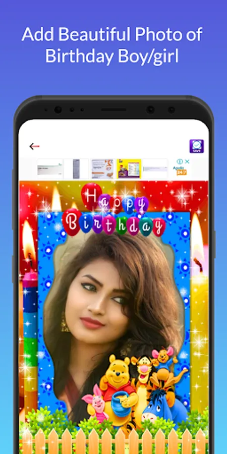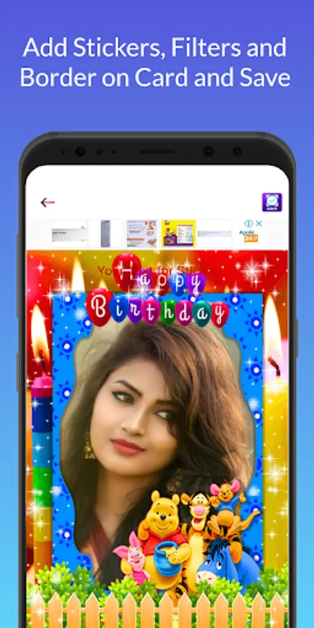 Our all Happy Birthday Frame has a space for add personalized photo. You can easily add your beautiful photo and adjust as you like to make more beautiful. Use this Happy Birthday Photo Frame App to quickly make a fantastic birthday photo card and share to your friends and family to wish a very Happy Birthday with amazing photo and effects.