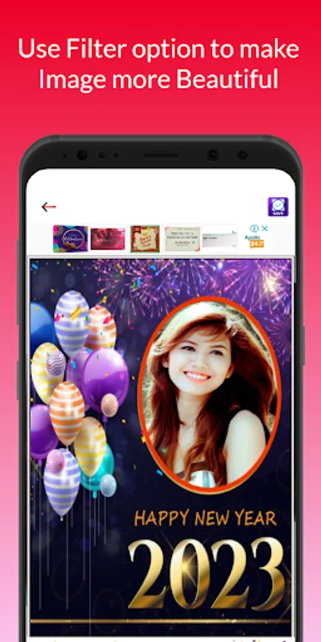 It is one of the best New Year 2023 frame app for making beautiful Happy New Year greeting card photo. The New Year card maker app has a lots of collection of Happy New Year Photo Frames and Christmas photo frames, Christmas filters, Christmas photo stickers and New Year photo stickers to create happy new year personalized photo cards. You can also add your own personal message or name on the cards. You can add your beautiful selfie to create a New Year Cards and share to social media like Facebook and Instagram. Why thinking, just Download New Year Photo Frame Editor 2023 and enjoy our tools, effects, collage maker and New Year Photo editing to make your Happy New Year Card in the best HD quality.