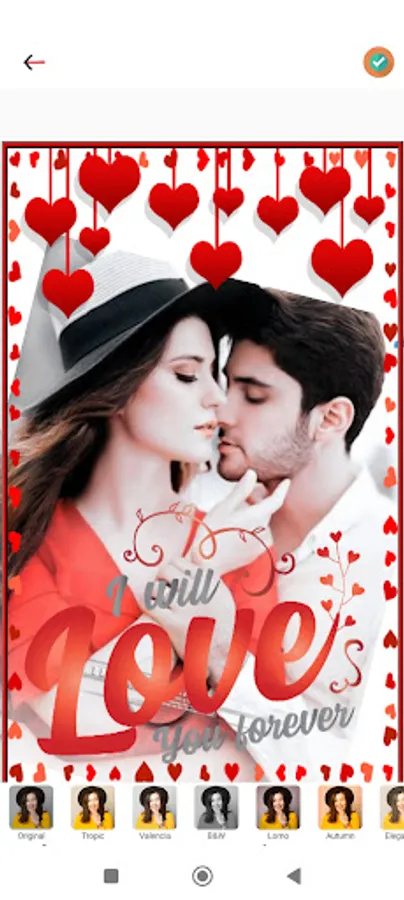 Easily add hearts, flowers, and love-themed stickers to your photos to create the perfect love photo frame image for share to your lover friend. The app also includes an easy-to-use photo editor, so you can adjust brightness, contrast, and saturation to get the perfect look.