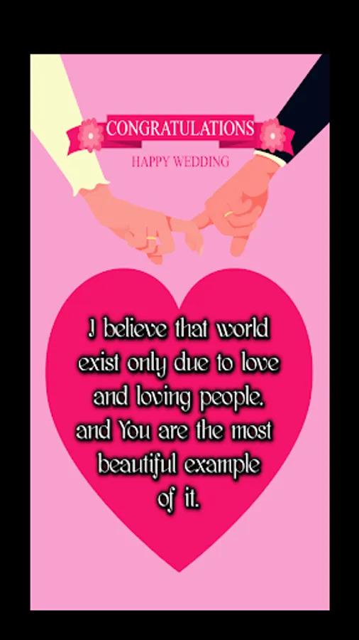 Wish the just married happiness and love For All Eternity! Celebrate this wonderful occasion with a sweet and personalized Wedding Greetings App! The union of two special soulmates is a moment that deserves to be highly celebrated, so why not do it in a bold way!