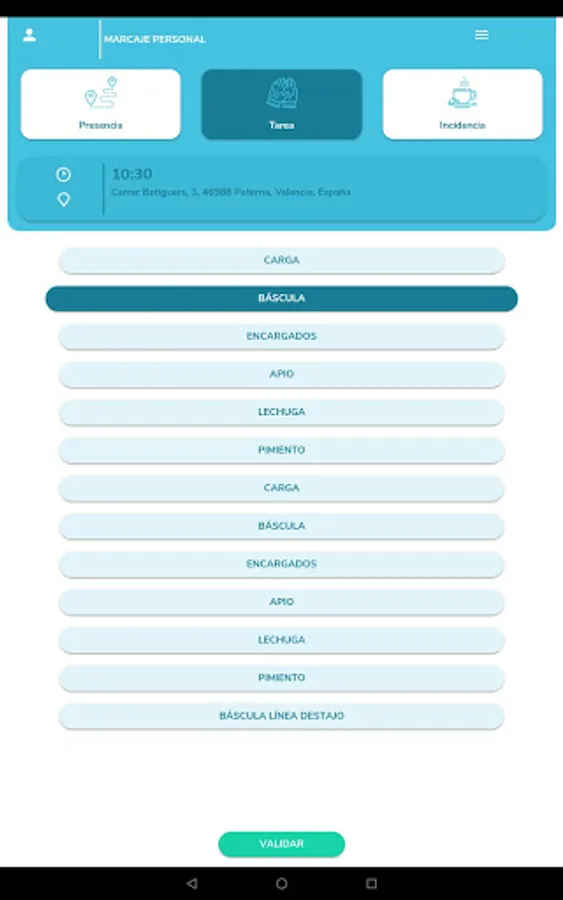 App to maintain the time control of your company's staff. With this app the workers carry out the time stamps of entry / exit and other types of incidents, so that the record of these is stored.