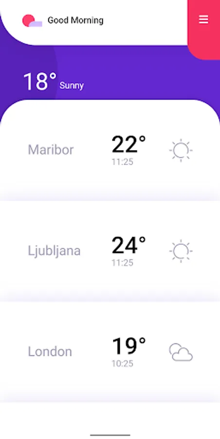 Application demo of a weather app to showcase design prototype conversion to a functioning app. It is created merely to show more advanced effects, animations, layouts and navigations and that their implementation is possible.