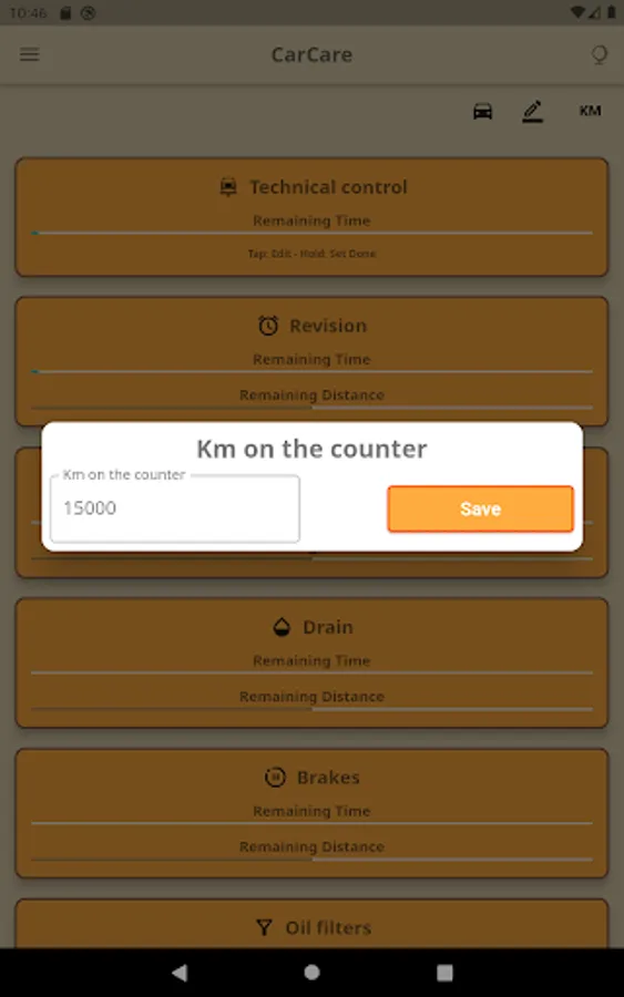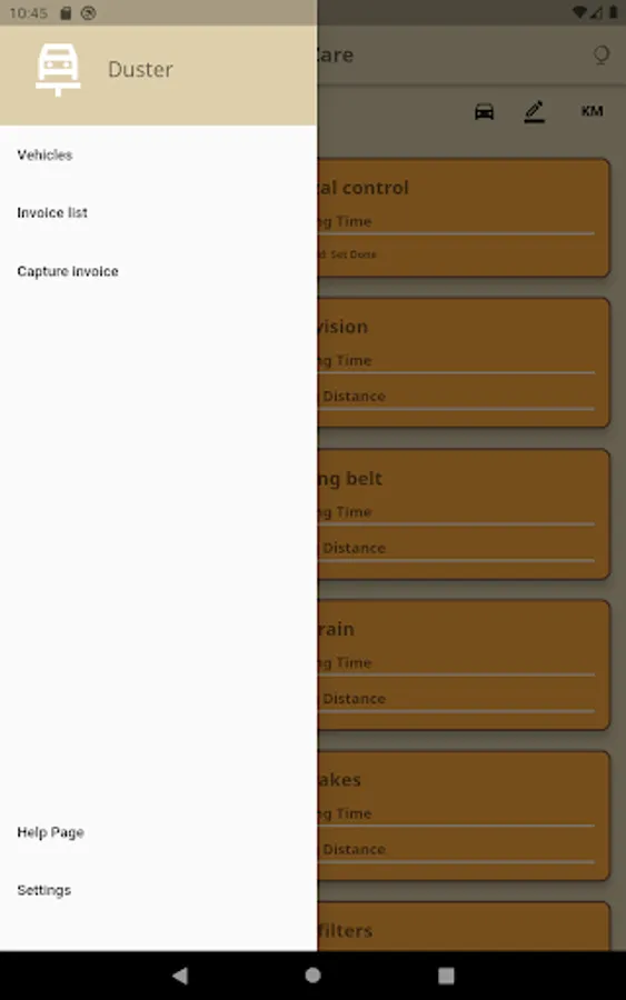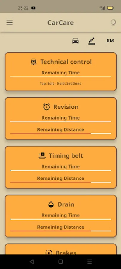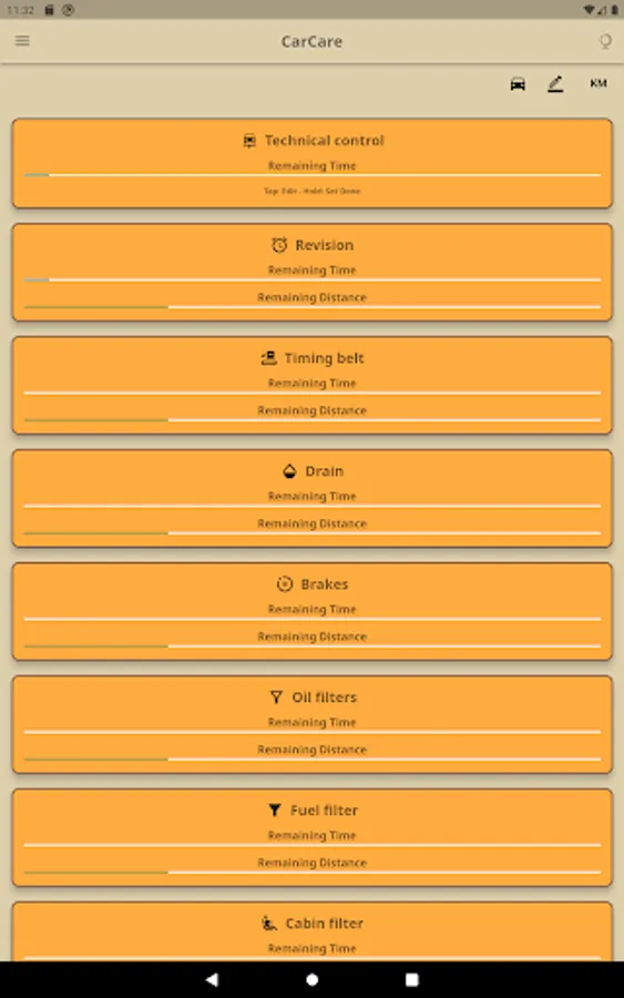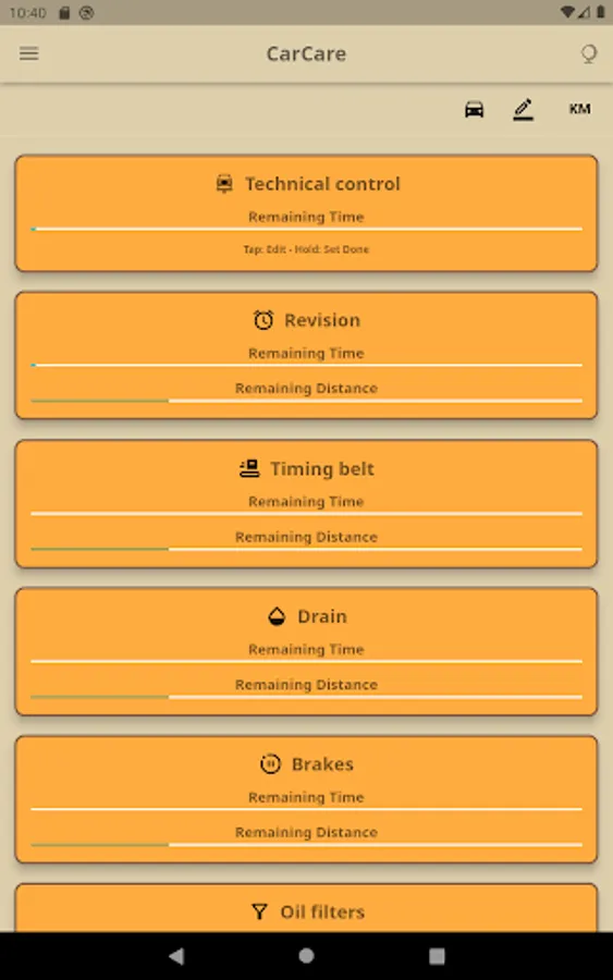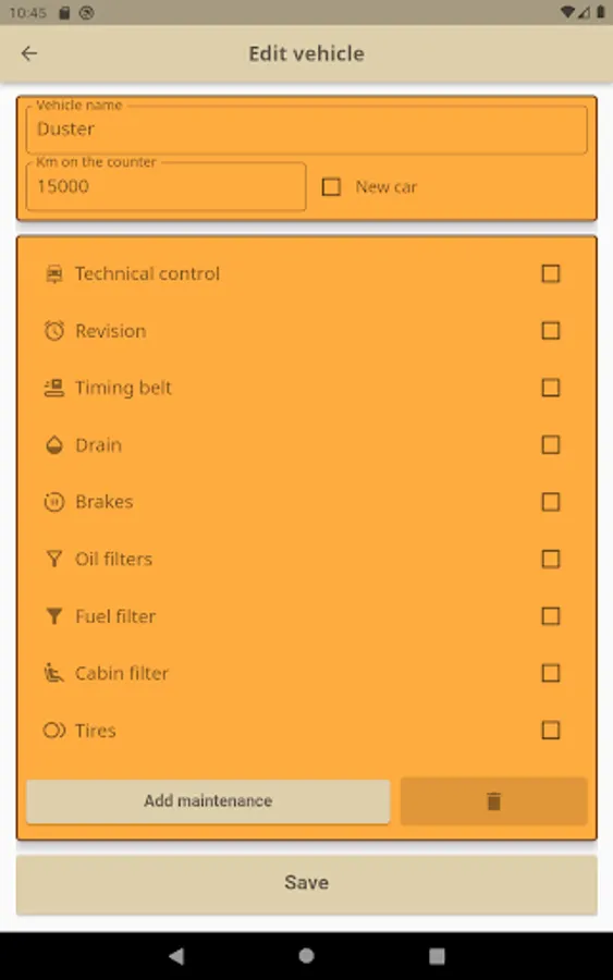 With CarCare, you can create and track the maintenance of any part of your vehicle, from essential elements to specific details, with pre-established suggestions to facilitate the setup.