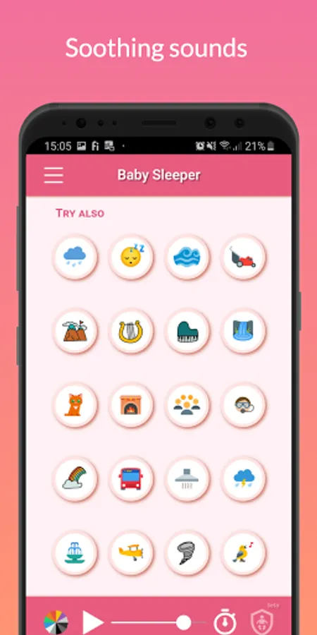 White Noise Baby App has sleepy sounds in its library, such as white noise, sounds of nature, lullabies for children, which make it easier for the baby to fall asleep.