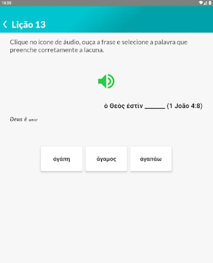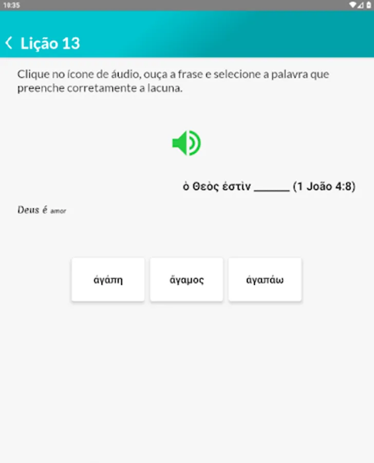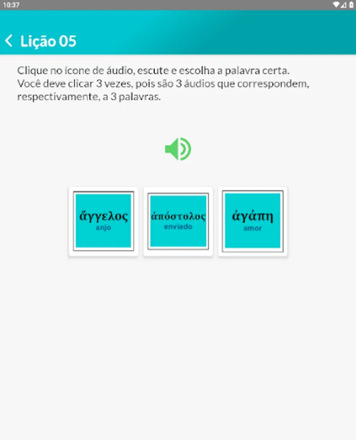 The Biblical Greek app was created to help Christians learn the Greek language used both in the writing of the Septuagint (translation of the Old Testament into Greek) and in the writing of the New Testament texts. Through it, Christians learn words, expressions and phrases from the Greek language used in the Old and New Testaments.