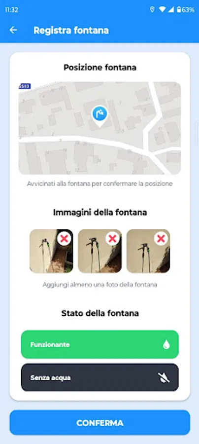 Our app promotes sustainability and resource sharing, encouraging users to report any issues they experience with drinking fountains. By doing so, you will help other users avoid non-working or undrinkable fountains, helping to keep the map always up-to-date and accurate.