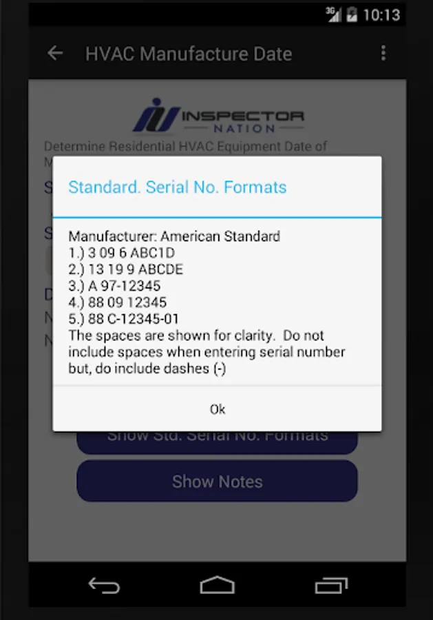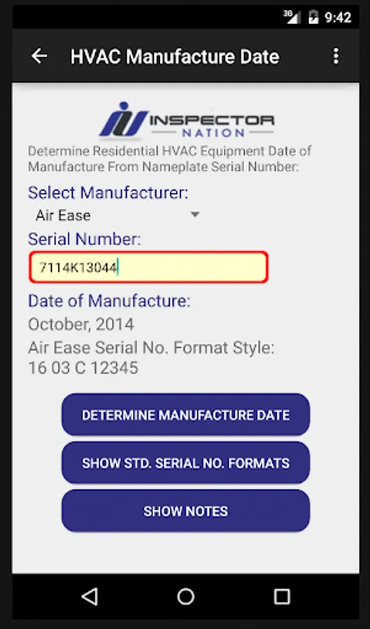 Inspector Nation presents a general reference application to provide insight into the world of HVAC equipment inspection. It is never good practice to mention the exact age or tonnage rating in the home inspection report, but having a reference point of age and size gives the home inspector confidence to map out the inspection and set the tone for the report. When combined with Inspector Nation's many resources, this application will provide the inspector with a valuable and fun learning experience. Home Inspection today is a demanding profession that requires a vast knowledge base combined with a dependable support network. Being a part of Inspector Nation can help you achieve your goals. For more information visit www.InspectorNation.com. This application will aid the inspector by providing guidelines for approximate values for:
