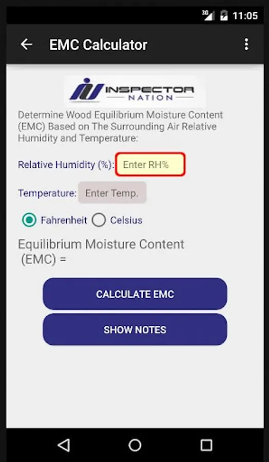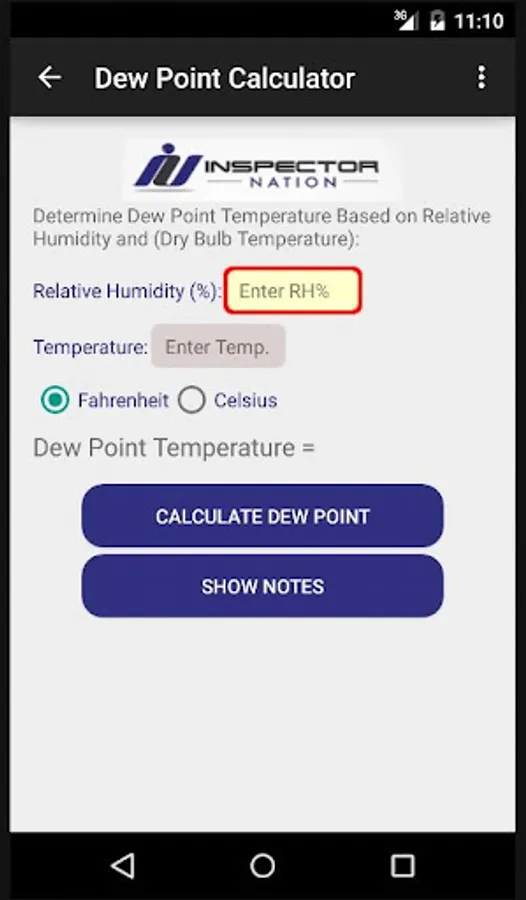 Inspector Nation presents a tool to help the inspector evaluate the conditions in a closed or naturally ventilated foundation or attic crawl space. Determine dew point and equilibrium wood moisture content readings based on relative humidity and temperature. This calculator will provide essential information to aid the inspector in determining if the crawl space system is functioning as intended or if further evaluation is needed. Locate hidden moisture sources, improperly insulated duct work, leaks, or incorrectly designed closed crawl space system based on simple comparisons of actual and expected conditions.