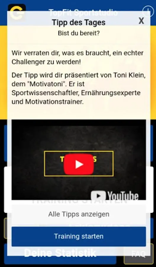 Every day you get a valuable tip on how you can create your personal goal in 6 weeks and your weaker self überwindest - full of information for optimal nutrition during the Challenge. Some tips you get with video message - presented by Toni Klein, the "Motivatoni" (sports science, nutrition expert, motivational speaker - known as TV coach and speaker at conferences)