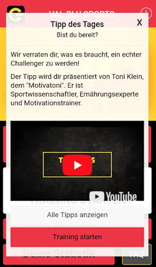 Every day you get a valuable tip on how you can create your personal goal in 6 weeks and your weaker self überwindest - full of information for optimal nutrition during the Challenge. Some tips you get with video message - presented by Toni Klein, the "Motivatoni" (sports science, nutrition expert, motivational speaker - known as TV coach and speaker at conferences)