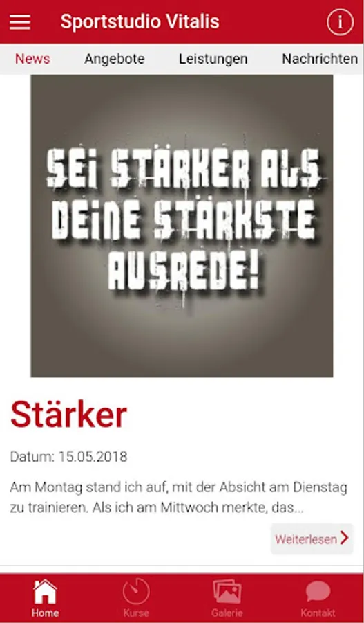 Vitalis Feuchtwangen on your phone, so you have all the information at a glance always there. Find out up to date with all courses, news and events. You want an appointment for your new workout plan or app simply book our Vitalis Feuchtwangen no problem a personal trainer appointment. Invite your friends to workout, because for two makes it more fun and with our app that's simple and fast.