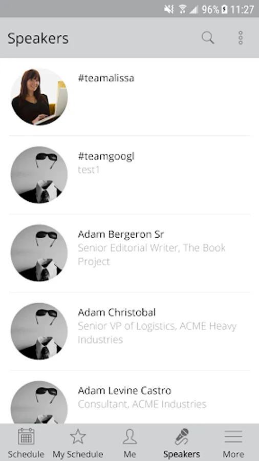 - Speakers and participants. Browse and search speakers, including names, pictures, titles and bios.