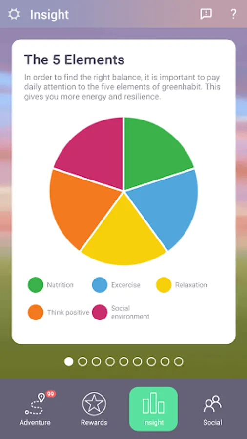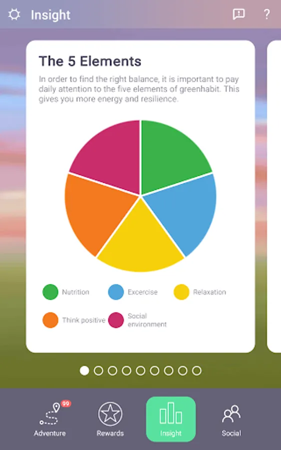 Live healthy and happy by creating good habits with greenhabit. This self-help game gives you energy, focus, motivation and reduces stress by focusing on the five elements of greenhabit in just 12 weeks: Nutrition, exercise, relaxation, positive thinking and social environment. You will be challenged and rewarded to be active in your mental and physical health.