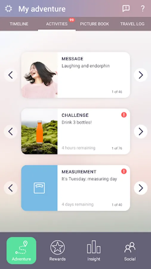 At the start of the greenhabit training, you will receive a package with your greenhabit training book. Then your greenhabit adventure begins. Every day you will receive tips and explanations about the five elements. You will be challenged and rewarded to be active in your mental and physical health. Daily repetition creates a new habit in your subconscious mind (developing a habit takes at least 68 days). In small steps (micro-objectives, challenges) you work towards a larger goal. Social attention is a big part of the training. When you do it together with a buddy, the effects are 40% greater because you help and motivate each other.