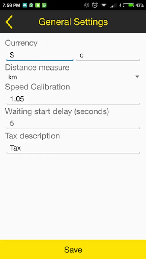 7. General Settings - Set your preferences such as Currency, Distance unit, Taxes and Wait Time.
