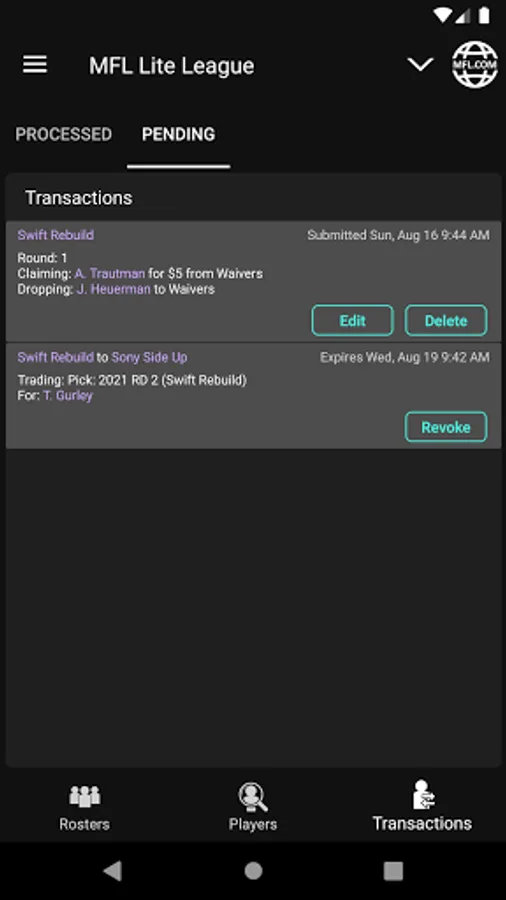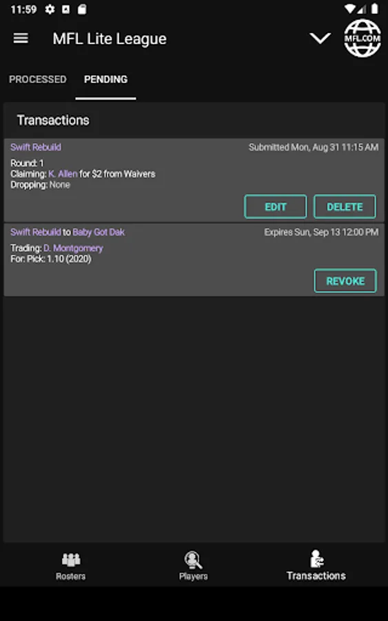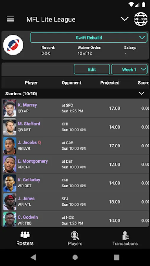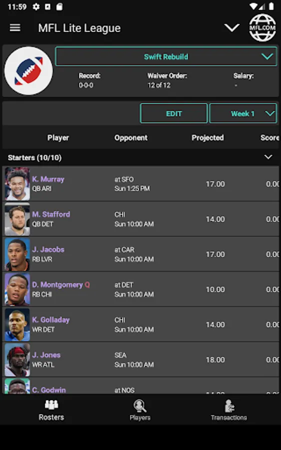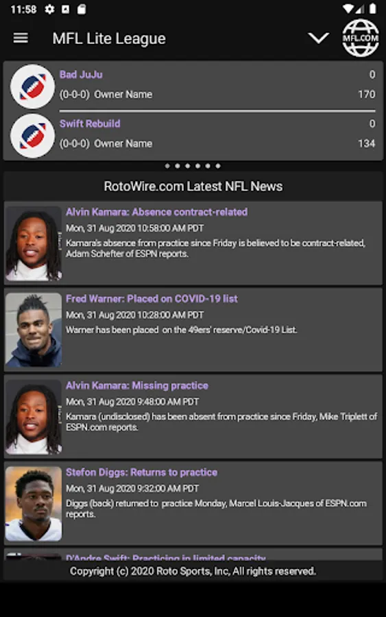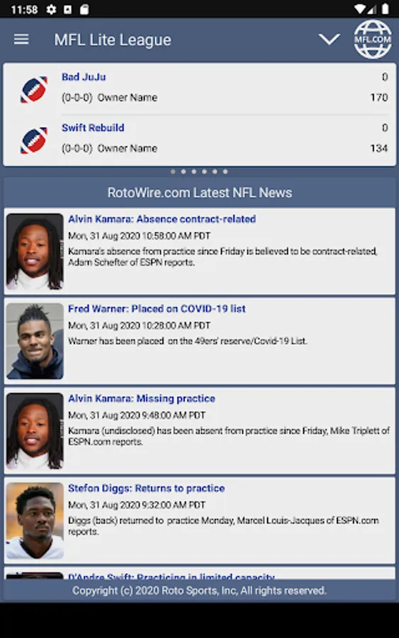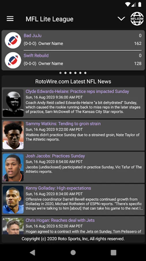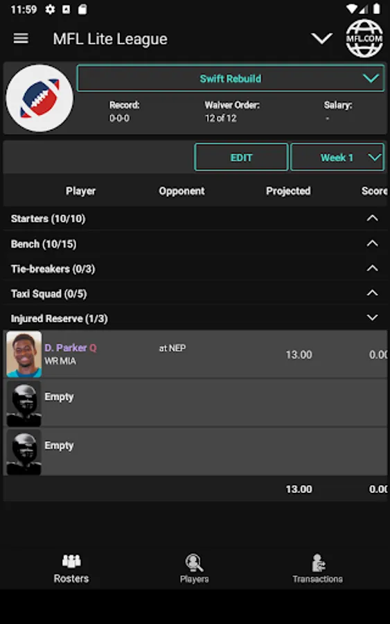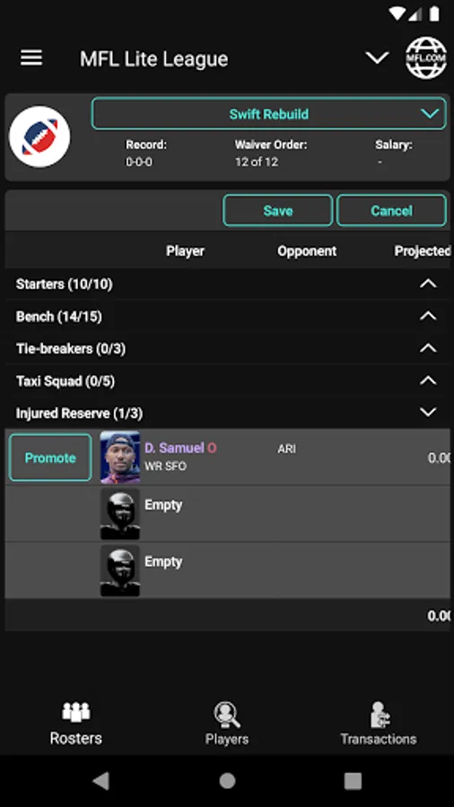• Streamlined roster management. Set lineup, IR, Taxi-Squad, and tiebreakers from a single location.