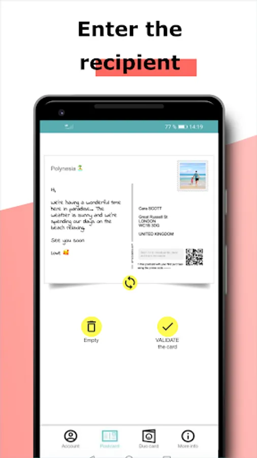 - access the addresses of your phone contacts, as well as the addresses of previously sent cards