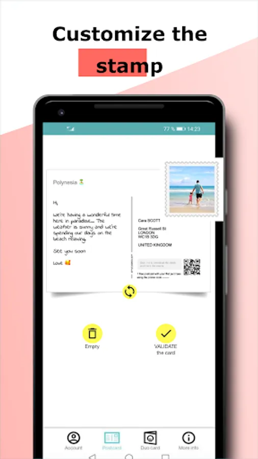 - enjoy a wide choice of themes: birth, wedding, birthday, love, travel, invitation, thank you, condolences...