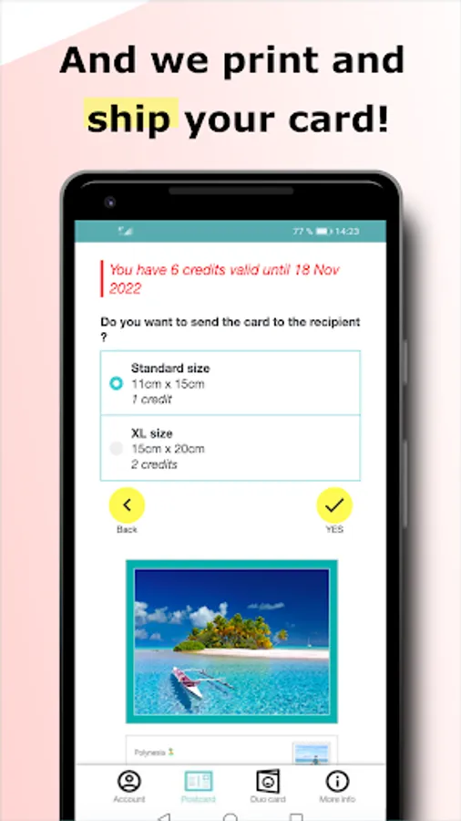 - The XL postcard, identical to the standard postcard but in 5.9" x 7.9" format for a guaranteed effect!