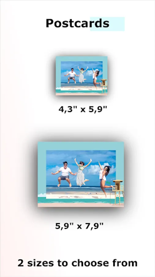 - The standard postcard in 4.3" x 5.9" format, printed on special postcard paper (330g) and laminated on the photo side like traditional postcards.