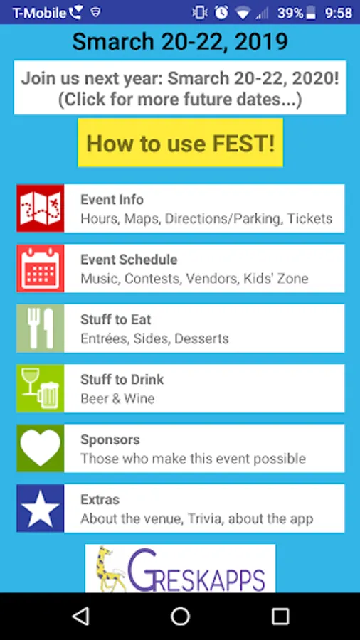 FEST! and FESTMASTER! exist as a joint service brought to you by Greskapps that helps event organizers better connect and expand their audience! Please download both apps from Google Play before getting started; FESTMASTER! can be found here on Google Play: