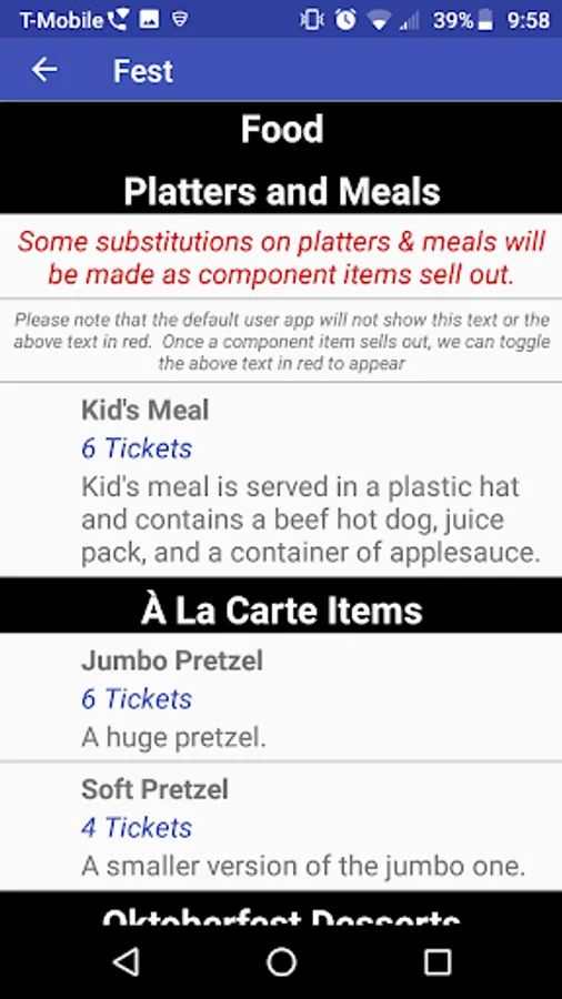 With an active internet connection in FESTMASTER!, you can press a checkbox to the left of an item to make an item unavailable; the app notifies the cloud-based database of the change in real-time. Subsequently, the database will update active users of FEST! (with an active internet connection) within seconds.