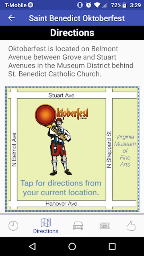 • Get turn-by-turn directions from your current location to the St. Benedict Oktoberfest event.
