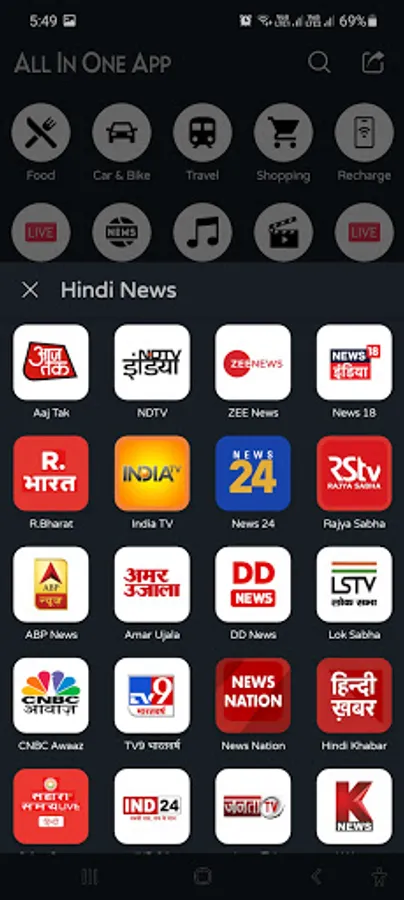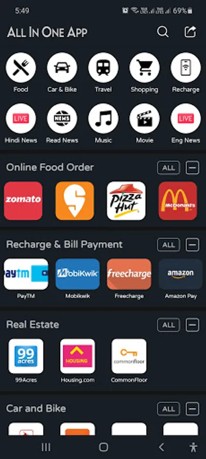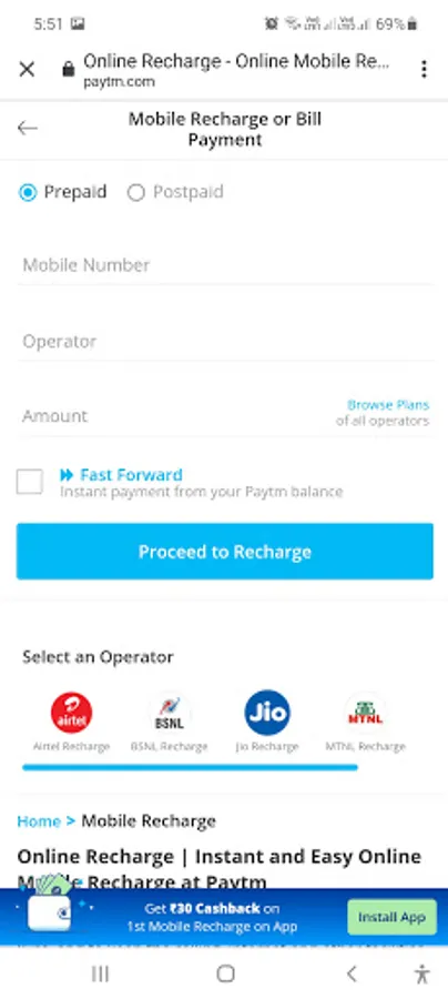 Shopping, Coupon and Deals, Recharge Plan, Recharge, Food, Travel, Movie, Job,