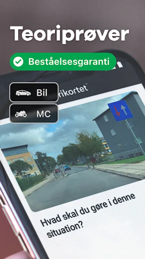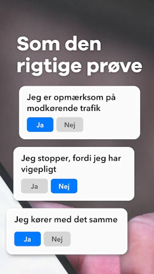 Our tasks are designed in the same way as the real test. You will encounter the same types of traffic situations as you may come across for the Danish Transport Agency's theory test.