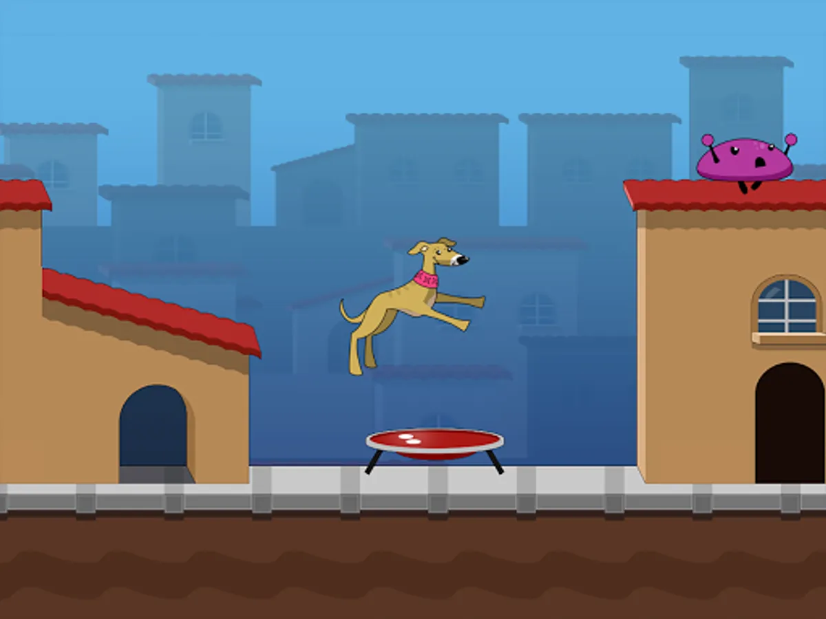 Join the galgos Ginny and her pals, Spike, Pietro and Rosa, as they traverse four amazing cityscapes in their quest to return home to their dog house. Aliens have invaded and it's up to you to help them make it home safely!