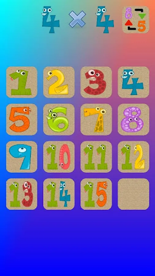 Place tiles directly from 1 to 15. The hole is at the right bottom corner.
