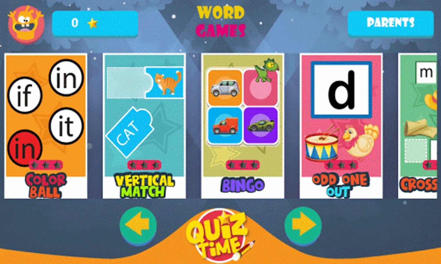 A Learning game for preschool and KS1 children to teach English Letters, phonic concepts, word formation, rhyming words etc. Supporting parents/teachers to get their child ready to read.