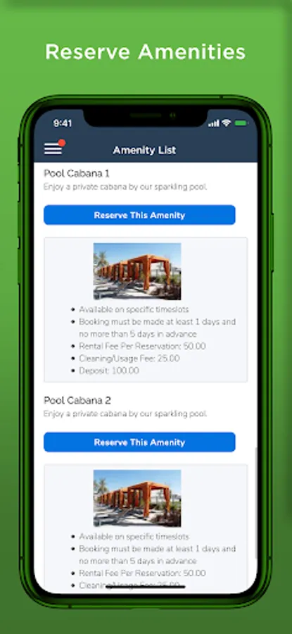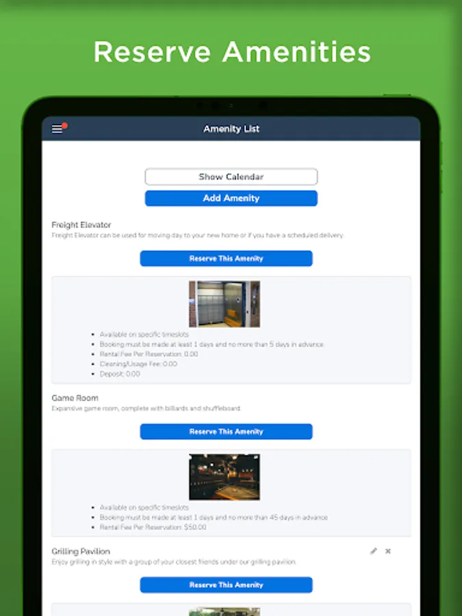 • Sign up for events, reserve amenities and (where applicable) pay for them right from the app