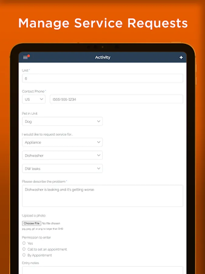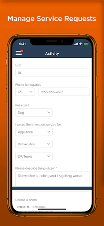 • Submit maintenance requests with photos and videos and automatically receive status updates