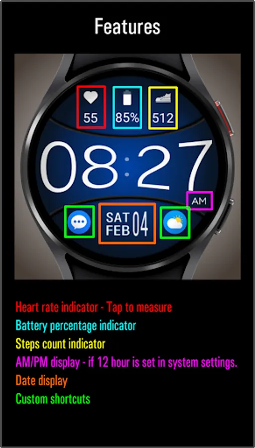 - 8 display colors to choose from for the middle and top/bottom separately.